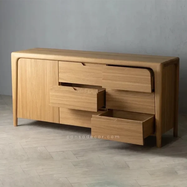 Anda tidak hanya mendapatkan keindahan visual, tetapi juga fungsionalitas yang luar biasa. Bufet ini biasanya dilengkapi dengan media penyimpanan luas dan serbaguna, memberikan ruang yang cukup untuk menyimpan peralatan makan, piring, gelas, atau bahkan barang-barang dekoratif lainnya