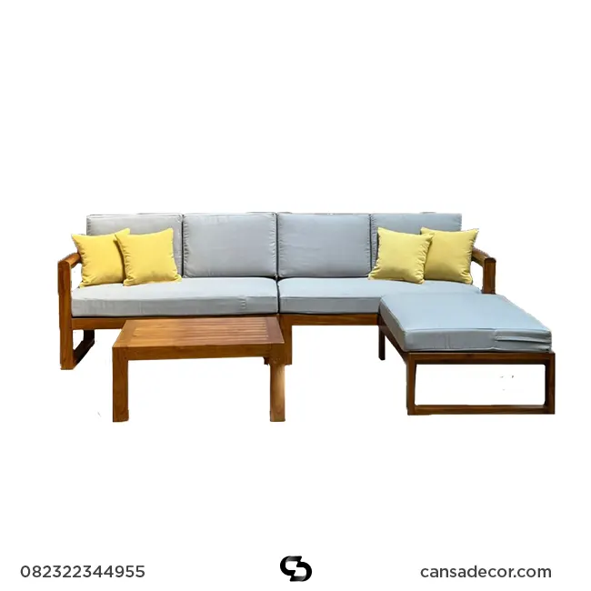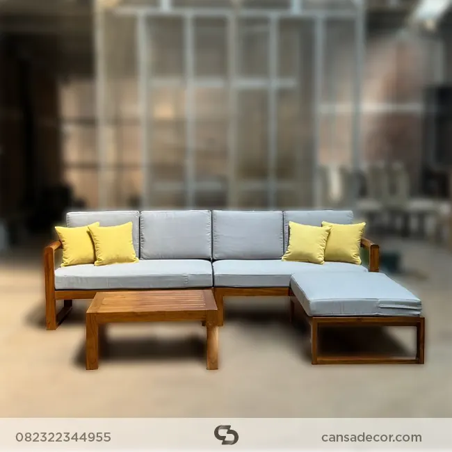 Lebih awet karena kayu jati memiliki ketahanan alami terhadap rayap dan kelembaban. - Apa fitur desain yang membuat kursi sudut kayu jati kuat dan bergaya?