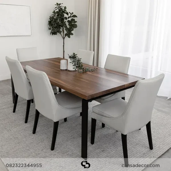 Meja makan kayu jati dengan kaki logam mewah