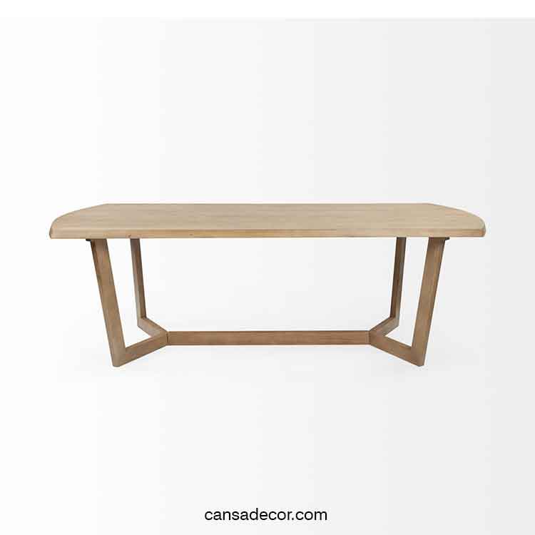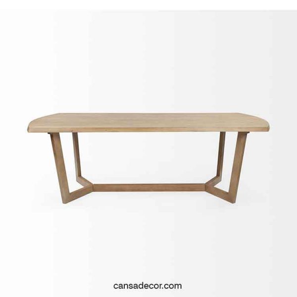 Meja Makan Dari Kayu Jati Donald Menampilkan bagian atas persegi panjang dengan sisi melengkung yang dibuat dengan ahli dari kayu Jati premium, ini adalah meja makan yang langsung membuat pernyataan di setiap ruang kontemporer. Bodi uni-warna dengan atasan cokelat sedang dan alas bersudut unik yang terinspirasi geometris meningkatkan tampilan Bette sambil menjaga semuanya tetap sederhana. Meja Makan Dari Kayu Minimalis Modern memiliki desain minimalis yang terbuat dari material kayu jati. perabot dengan finishing warna natural untuk menambah nilai seni dalam furniture ruang tamu ini. Percantik ruang di rumah anda Anda dengan furniture yang bergaya modern ini. Dibuat dari kayu solid, produk ini menampilkan kaki bersudut, dan sentuhan akhir dua warna yang cocok dengan dekorasi modern Anda.