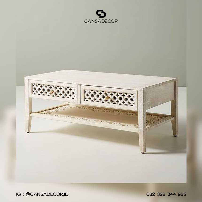 Wujudkan ruang tamu bergaya vintage elegan dengan Meja Tamu Shabby Laci MSC-024.