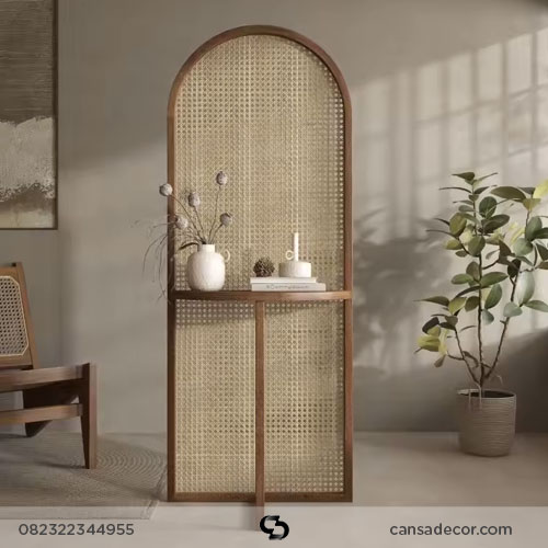 PARTISI PENYEKAT RUANGAN MINIMALIS. ESTETIK, FUNGSIONAL & ELEGAN. Sedang cari penyekat ruangan yang bukan cuma berfungsi tapi juga mempercantik rumah? Partisi ruangan minimalis dua sisi dari Cansa Decor ini adalah jawabannya. Dengan desain modern berbahan kayu jati asli dan detail rotan alami, ia memberi sentuhan hangat dan berkelas. Ideal untuk siapa saja yang ingin mengatur ruang secara cerdas, tanpa kesan sempit.