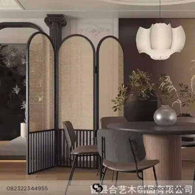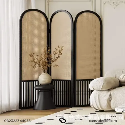 - Nama Produk: Penyekat Ruangan Lipat dari Kayu Fis & Rotan – Black Japandi Series
