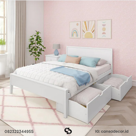 Ruang kamar anak sering kali terbatas, sehingga memerlukan perabot yang praktis, fungsional, sekaligus indah. Pilihan tepat untuk itu adalah tempat tidur anak perempuan Dengan desain sederhana namun tetap menarik, ranjang ini mampu memberikan nuansa modern pada kamar anak tanpa terlihat berlebihan.