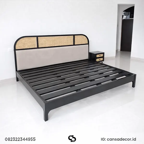 Tempat Tidur Jati Jepara Kombinasi Rotan Duco Hitam - cansadecor | Jual Furnitur Cantik